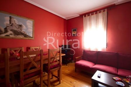 El salón tiene una amplia mesa para reunirse en torno a un buena charla, un buen lechazo, una buena partida de trivial