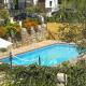 Cuenta también con aparcamiento gratuito, jardines, barbacoa, 2 piscina de verano (una para adultos y otra para niños) y piscina climatizada,jacuzzi y sauna abierto de lunes a sábado.