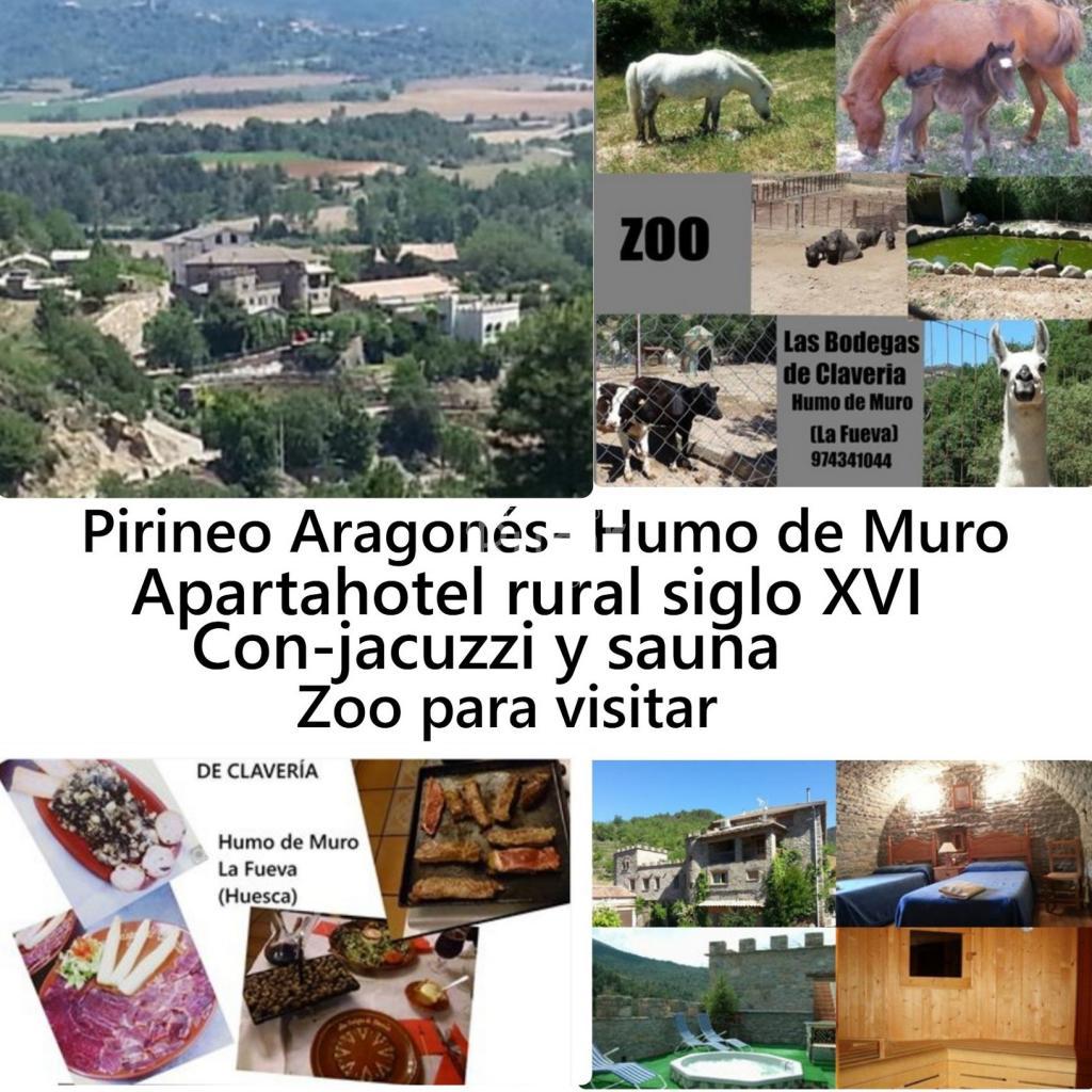 as Bodegas de Clavería es un estupendo establecimiento rural del siglo XVI, situado en un pequeño pueblo llamado El Humo de Muro (en el Valle de la Fueva) HUESCA, Pirineo aragonés. Dispone de apartamentos y habitaciones, jacuzzi, sauna, barbacoa