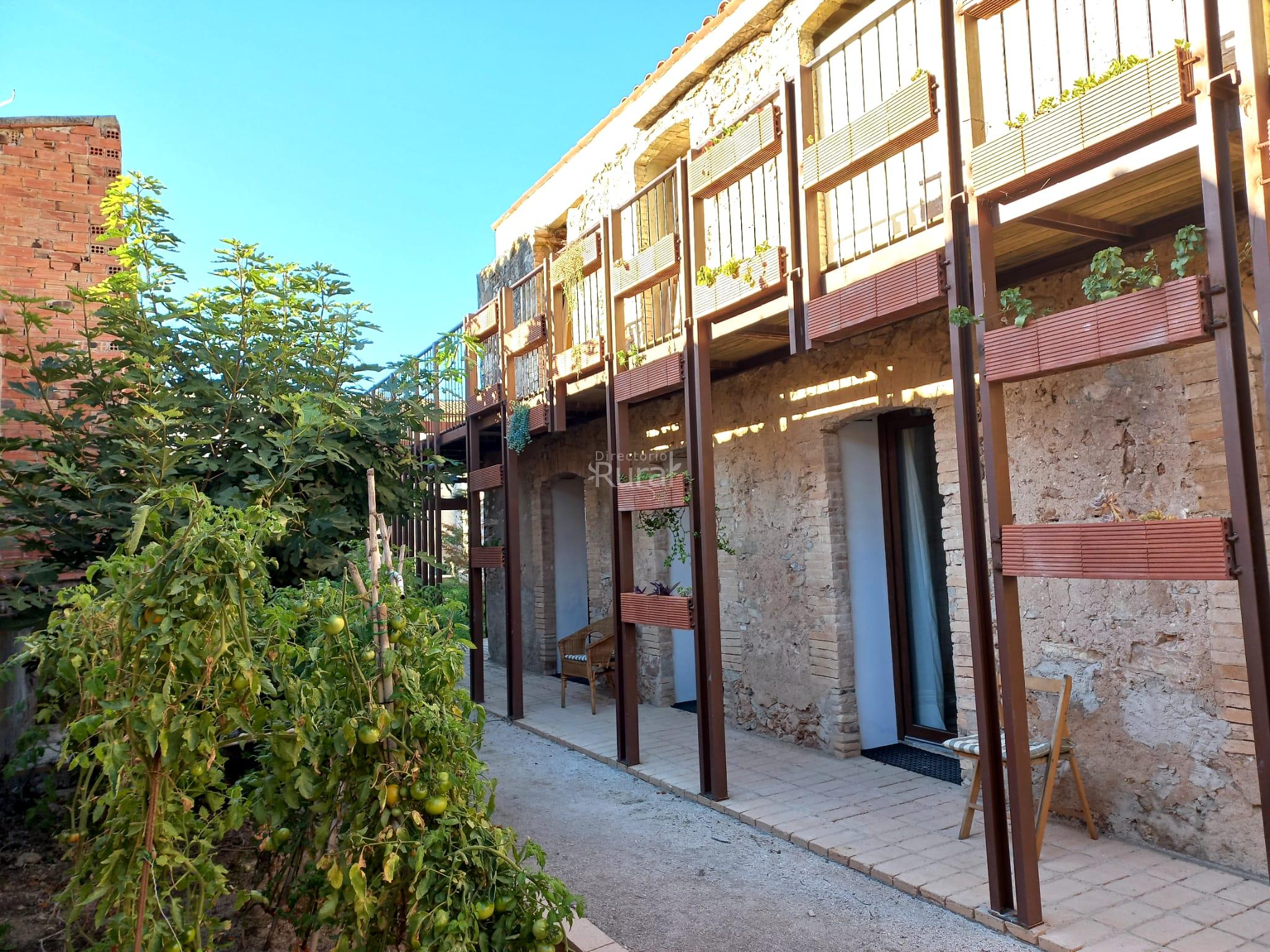 Alojamiento rural en modalidad de casa de pueblo compartida que cuenta con habitaciones con baño, comedor y cocina compartida entre las tres habitaciones y un jardín a disposición de los huéspedes.