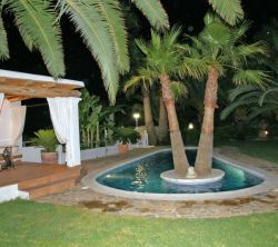 Can Teo es una tranquila vivienda de estilo ibicenco ideal para pasar un tiempo de relax. Se encuentra en un oasis tropical muy cerca de San José y de las mejores calas de Ibiza. En ella se disfruta de un tranquilo parque natural rodeado de pinos con unos preciosos jardines que crean un ambiente de ensueño.