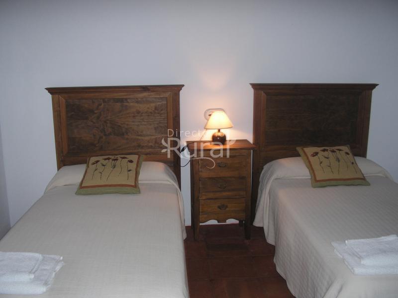 La planta alta tiene cuatro habitaciones, cada una de ella con cuarto de baño completo, T.V., calefacción y aire acondicionado. Así mismo, dispone de un salón de lectura, una cocina, completamente equipada con frigoríficos independientes para cada habitación, y una terraza desde la cual podrá escuchar las campanadas de la torre situada a muy pocos metros, disfrutando de las vistas al castillo. El huerto de la casa tiene una piscina de uso exclusivo para los huéspedes.