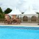 Exterior: piscina con hidromasaje, muebles de jardín, granja, barbacoa, aparcamiento y terraza.