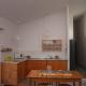 Junto a la casa en el huerto de olivos y almendros recuperado, se sitúa una terraza con suelo de madera. La casa de los Olivos es de nueva construcción, su planta es rectangular y está hecha con criterios de arquitectura contemporánea. Tiene una sola crujía alineada al barranco del arroyo del Contrapeso. Su cubierta está revestida de tejas planas por el origen industrial del sitio y el proyecto se concibió para dibujar el borde de la aldea y la contemplación del río.