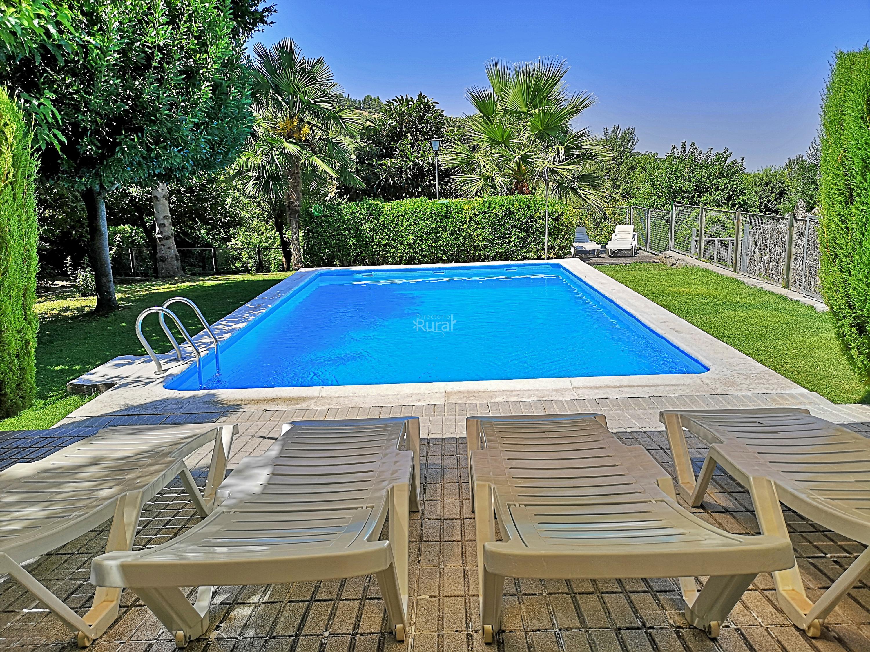 Casa El Rincón dispone de 4 dormitorios de matrimonio, Dos baños, salón con 2 sofás, chimenea, aire acondicionado y Tv, cocina con todo el menaje necesario, lavadora, frigorífico, microondas, etc, calefacción central, terraza con mobiliario, cocina- barbacoa exterior y piscina exclusiva para ocupantes de la casa con mobiliario y cesped. Amplio aparcamiento dentro de la finca.Capacidad máxima 12 personas, mínima 8.