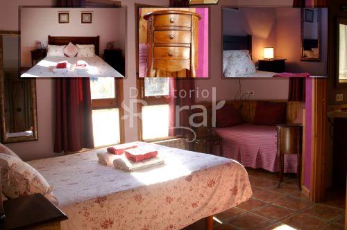 El Cireré: habitación con cama de matrimonio + cama individual con baño.