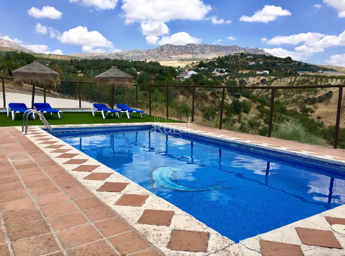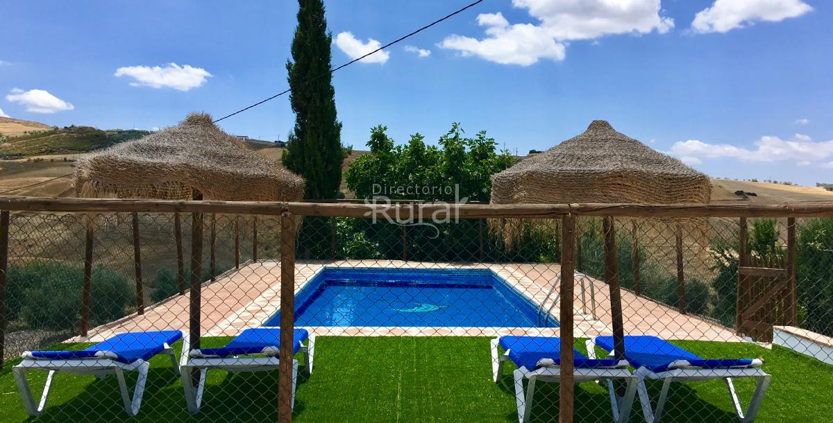 Dispone de 2 amplias habitaciones, cocina completamente equipada, salón comedor y chimenea. En el exterior destacan sus magníficas vistas al Torcal de Antequera y podrás disfrutar de piscina privada de 4x8m2, barbacoa, terraza delantera y porche cubierto lateral.