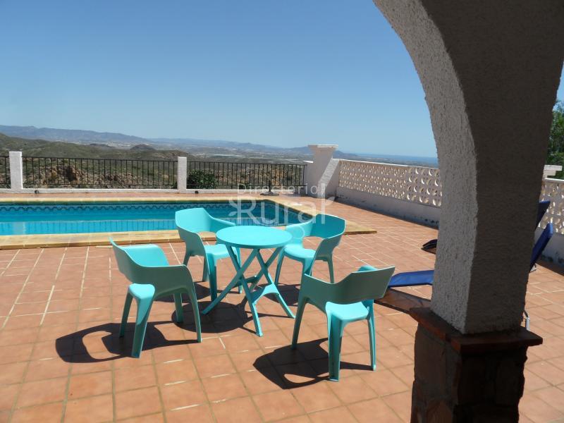 Confortable y amplia casa con piscina privada y magnificas vistas a la montaña y la playa. Situada en un entorno inmejorable y tranquilo.