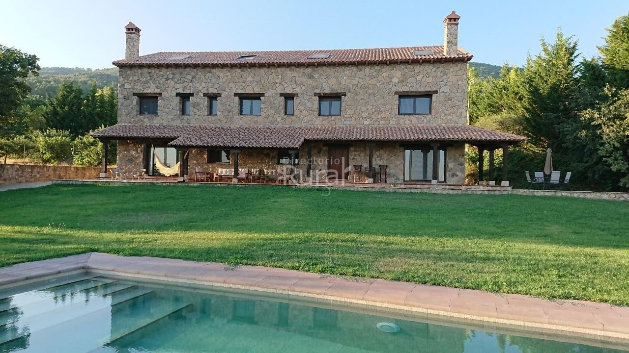 Alquiler íntegro. Gran casa de estilo rústico en piedra y madera en uno de los parajes más bellos de la sierra de Gredos, a la vera de Pico Almanzor y con unas vistas espectaculares. Su emplazamiento, al abrigo de los cierzos (vientos del norte)