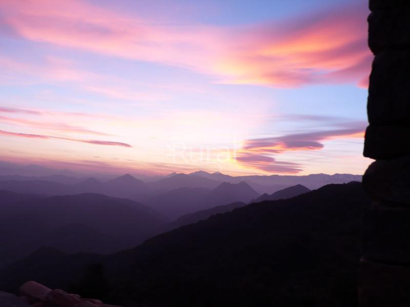 La masía está totalmente reconstruida con un estilo moderno y respetuoso, y está situada en un lugar único: a 900 metros de altitud, con unas vistas espectaculares de toda la Garrotxa, los Pirineos, el Montseny...