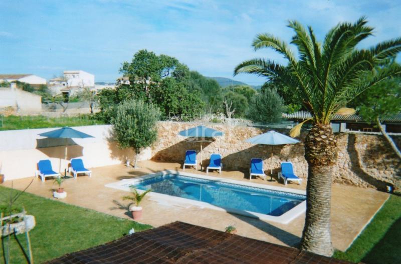 la casa,se encuentra a 500metros del centro del pueblo,tiene una capacidad para 8per.y 3 bebes,hay aa\cc por todas las hab,toallas y ropa de cama incluida, hay un pony para los peques,mesa de pin-pong,2 bicicletas,piscina privada, barbacoa,porche,cocina equipada,es ideal para descansar, playa a 3km, puerto a 4km,palma a 50km