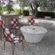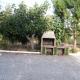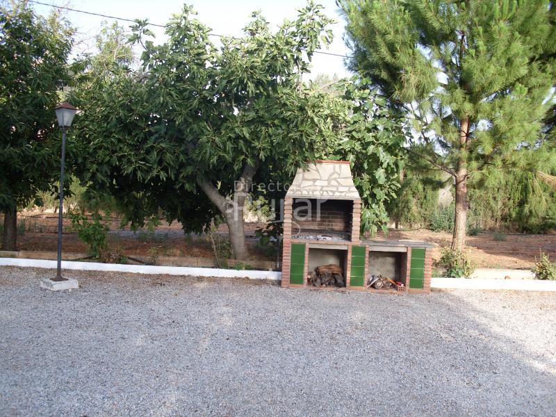 metros, su barbacoa, barra, mesas que son ruedas de molino antiguas, entorno