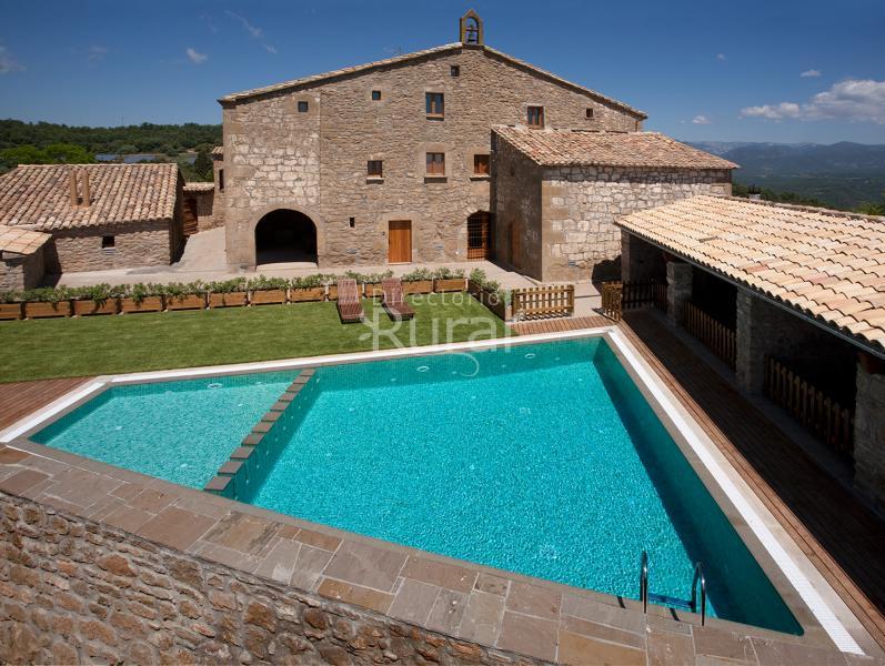 Entrad en la casa vestida de piedra, su puerta de madera os dejará pasar a su gran recibidor, dentro veréis el pozo natural y encontraréis las puertas de la antigua cuadra y de la bodega. Subid las escaleras de piedra, pisad todos estos años de historia... os llevarán hacia sus espacios interiores. Exteriores protegidos por la misma casa, os permitirán disfrutar de la piscina, el jardín, el cubierto con barbacoa... Salid de los muros que la protegen y pisad la era, estaréis solos en campo abierto, observad, ahora desde fuera, los parajes que la rodean, comed algo cerca del pozo exterior, o simplemente continuad respirando el aire que la casa siempre ha respirado.
