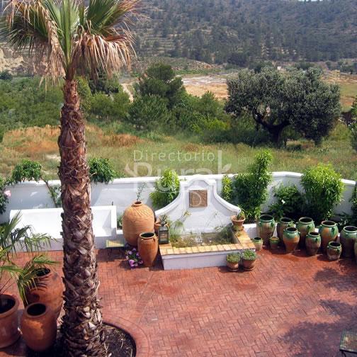 En el exterior se puede disfrutar de sus patios cuajados de plantas, escuchar el gorjeo del agua de sus fuentes, de la magnífica piscina y de los jardines con palmeras, naranjos y olivos que entremezclan sus matices ocres y verdes con las coloristas buganvillas.