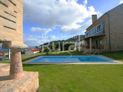 Hotel rústico con vistas expectaculares a la ría de Finisterre, piscina, wifi, calefacción, desayuno típico gallego, parking gratuito y servicio de cena.