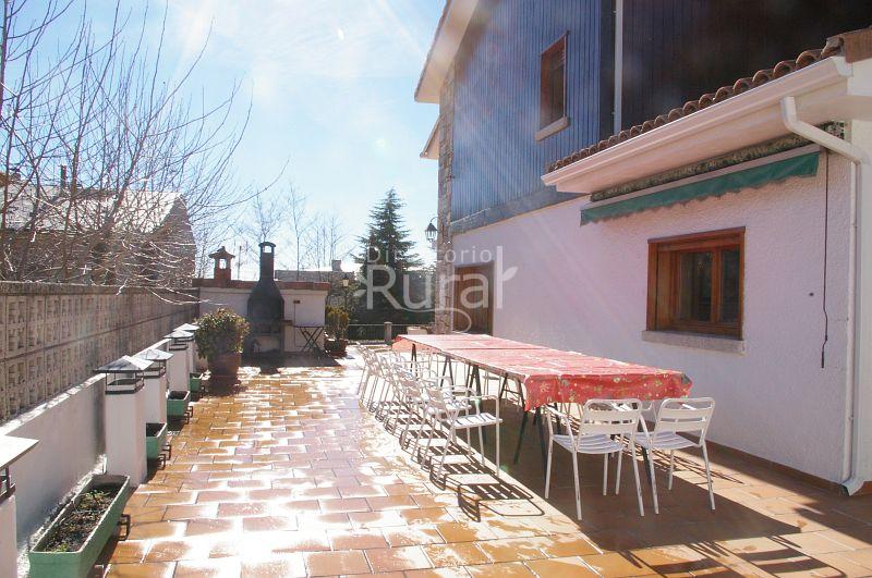 Además cinco cuartos baño, 2 cocinas muy bien equipadas y salón comedor con chimenea de piedra. En el exterior terrazas con porche y patio con barbacoa, sillas y mesas para 20 personas. Piscina infantil de 3x4. Salón de juegos con ping-pong, futbolin, butacas, zona de juegos para niños.
