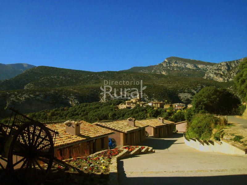 Cafetería, tienda de comestibles,wifi gratis, piscina, apartamentos tipo casitas a pie de calle totalmente equipados, terrazas con vistas espectacualres, empresas de actividades de aventura (barranquismo, escalada y senderismo), excursiones, Parque natural sierra de Guara, cañón de Mascún, decoración rústica y confortable, etc