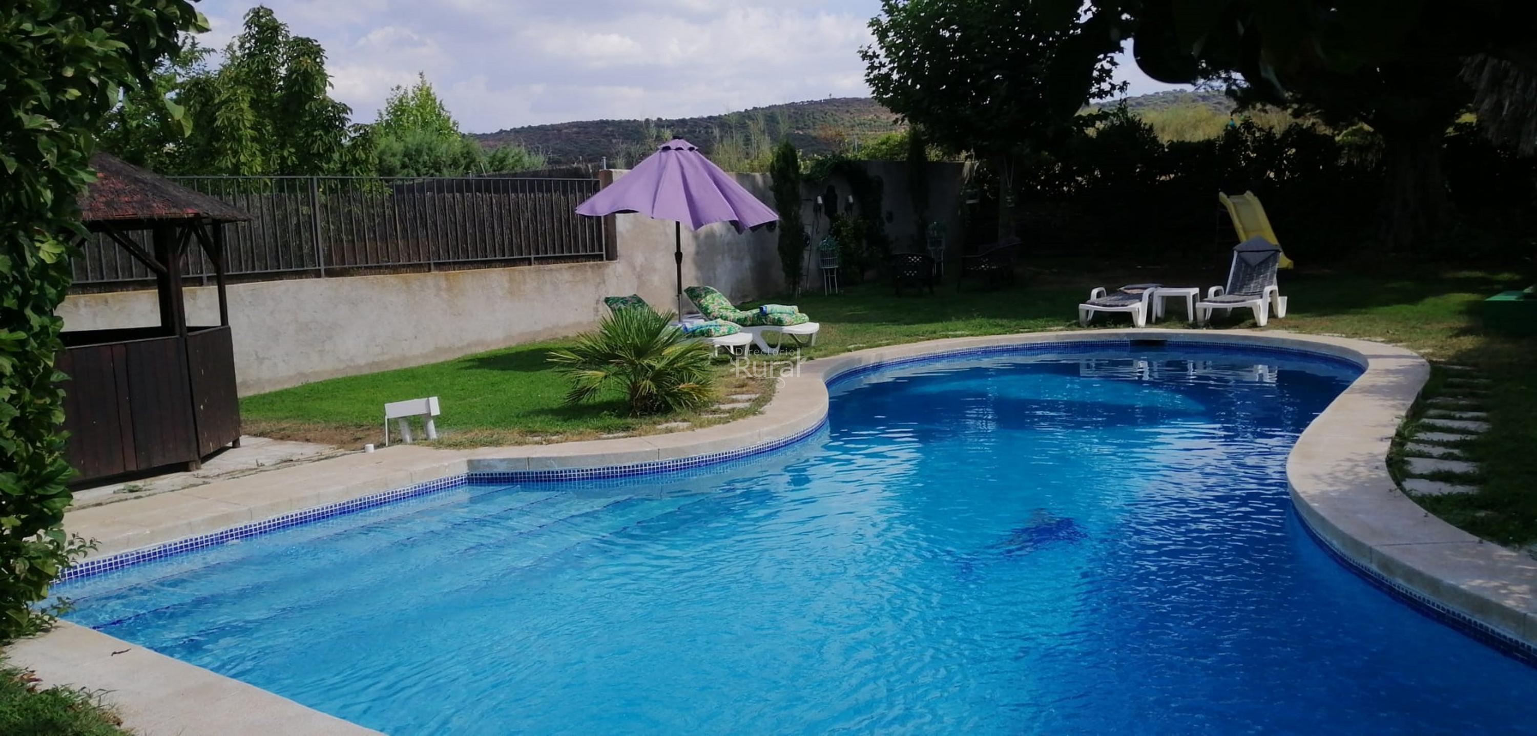 Parcela de 700 m2 con Piscina privada con forma, abierta de Mayo al 15 de Octubre, de 17 m de largo x 12 m de ancho con iluminación nocturna, tumbonas y sombrilla. Durante los meses