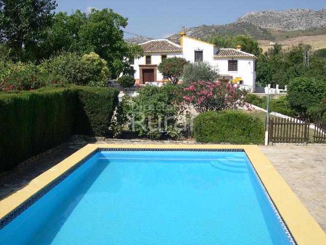 Situada en el partido rural de Hoyo Tabares, a 6 Kms. de Ronda por la carretera de Ronda-Benaoján, junto a los Parques Naturales de Grazalema, Sierra de las Nieves y Los Alcornocales, a 5 minutos de la Cueva del Gato, a 15 de la Cueva de la Pileta y a 20 de la ciudad romana de Acinipo. Villa San Antonio es una casa centenaria de dos plantas totalmente reformada en Junio de 2007 conservándose los muros originales, así como los elementos más rústicos y bellos de esta maravillosa vivienda, donde cada rincón ofrece la calidez y encanto que busca el viajero más exigente. En la planta baja se encuentra un amplísimo salón presidido por una práctica chimenea donde se pueden contemplar las columnas de ladrillo árabe originales. Separada del salón por una pared de ladrillo antiguo perfectamente conservado, se encuentra una preciosa y práctica cocina tradicional y un baño con ducha. La planta alta, a la que se accede a través de una original escalera con barandilla de típica forja rondeña, cuenta con 4 dormitorios con calefacción ( 2 con camas dobles y 2 con cama de matrimonio, 3 de ellos con armarios empotrados) y 2 baños (uno de ellos construido a base de ladrillo árabe con ducha y el segundo de estilo más moderno con bañera). Los techos conservan en perfecto estado las vigas antiguas de madera en todas las habitaciones, donde el mirar hacia arriba supone transportarnos atrás en el tiempo. Las ventanas son de gran calidad y disponen de aislamiento especial. El exterior de la casa presenta un claro estilo andaluz en el que se combinan la piedra original, que puede contemplarse en las esquinas, con la perfecta terminación del ladrillo de la portada y penachos de las ventanas, todo ello coronado por un tejado árabe a cuatro aguas. La casa se encuentra enclavada en una finca totalmente independiente de 20.000 m2 de huerta de regadío con extensa vegetación donde se puede disfrutar de los numerosos árboles frutales, manzanos, ciruelos, almendros, membrillos, granados, higueras, chopos, nogales, etc. Posee barbacoa, piscina de10 x 5 m. con depuradora automatizada, muebles de jardín con mesas, sillas y tumbonas, así como zona infantil con columpios y aparcamiento para varios vehículos. La casa cuenta con un anexo independiente, que dispone en la planta baja de salón con chimenea, en la que la decoración rústica se mezcla con elementos muy prácticos, completa cocina y aseo, y en la primera planta de dos dormitorios con calefacción, uno individual y otro de matrimonio, además de baño completo con bañera. Comparte la piscina con la casa.